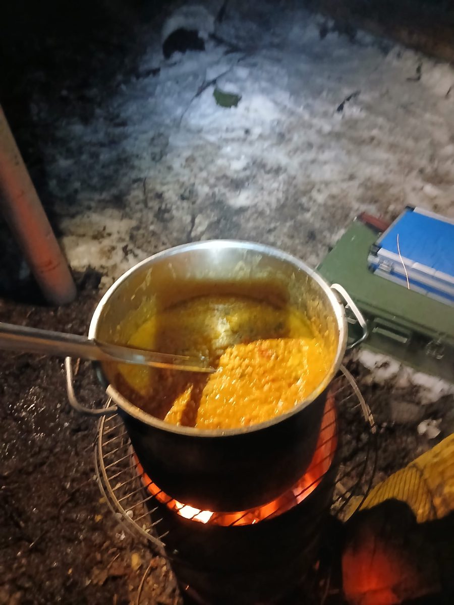 2026-02, Winterlager Unser kleiner Weiher Jurte im Matsch... Viel Holz hilft viel Lecker Linsenkartoffeleintopf